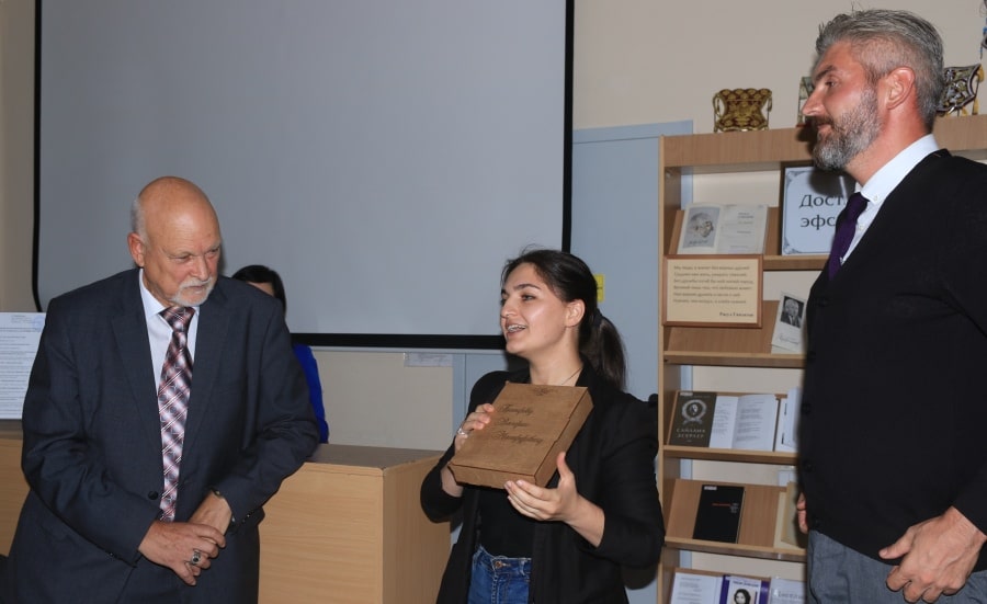 заместитель директора Лейля Кадырова и от всего коллектива поздравили гостя с юбилеем.