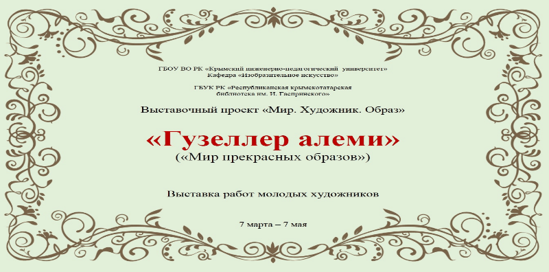 7 марта в рамках выставочного проекта «Мир. Художник. Образ» в библиотеке состоялось открытие выставки работ молодых художников «Гузеллер алеми», посвященной красоте, нежности, весне в женском образе.