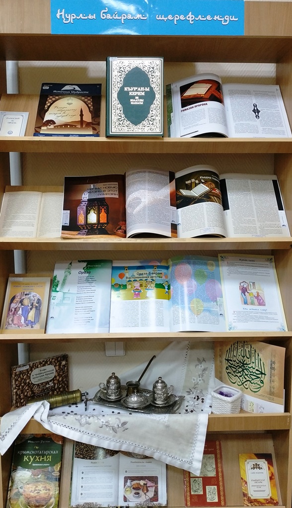 К завершению мусульманского поста и к празднику Ораза-байрам в Республиканской крымскотатарской библиотеке имени Исмаила Гаспринского при поддержке Министерства культуры Республики Крым была организована выставка-праздник «Нурлы байрам шерефленди» («Прославление светлого праздника»).